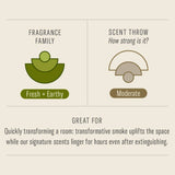 A weekend in the mountains, sun gleaming through the canopy. Notes of sage, moss, and lavender. Incense quickly transforms a room: transformative smoke uplifts the space while our signature scents linger for hours even after extinguishing. Our charcoal-based Incense is hand-dipped in-house using fine fragrance oils and dipropylene glycol (DPG), a synthetic base commonly found in body care and home fragrance products. Each stick burns for 1 hour; depending on room size, scent longevity lasts between 2-4 hours. 15 sticks in a plastic sleeve inside of each kraft package, measuring 10.75" long each.