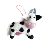 Have an "udderly" cute holiday with a charming Cow Ornament. This black and white Holstein is a bestseller year after year! Our felt wool ornaments are handmade by artisans in Nepal, Asia using colorful sheep wool. Popular for their charming designs, felted ornaments are soft, durable and excellent for holiday gifting. Perfect stocking stuffers for kids, gift toppers or whimsical Christmas decor! Round up all our friendly farm animals for a happy hoedown Christmas.
