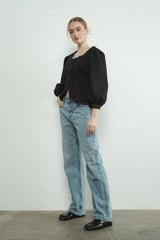SQUARE NECK SCALLOP EDGE HEMLINE BLOUSE