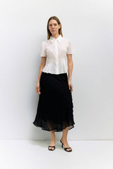 The Lizzy Skirt is crafted from lightweight, sheer chiffon with a fully lined design for comfort and coverage, featuring a midi length, elastic back waistband, and side partial invisible zipper.