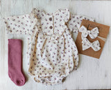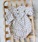 Baby Girl Super soft Cotton Flannel Long Sleeve Bubble Romper made with Front and back Ruffles and 2 buttons on back. Romper also has 3 snap button at the crotch for easy diaper changing Rompers made with 100% cotton Perfect for Spring, Fall and winter.