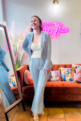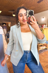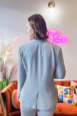 Add a pop of color to your wardrobe with our Pale Blue Single Breasted Blazer. This baby blue blazer is fully lined and features a button closure for a sleek and polished look. Elevate any outfit and make a statement with this eye-catching piece!
