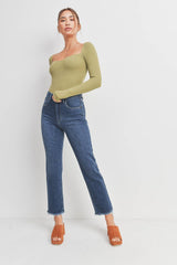 Dark Wash Busted Hem Straight Leg Jean