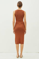 Indulge in sophistication with our Leg Slit Bodycon Ribbed Knit Midi Dress. With a solid round neck, this dress features a sexy and glamorous silhouette, perfect for any upscale event. Its ribbed knit fabric provides a moderate stretch for a comfortable fit, while the front side slit adds a touch of sensuality. The midi length falls just below the knee, creating a tasteful and exclusive look. Sleeveless and tank-style, this dress is a must-have for those seeking a stylish and luxurious wardrobe addition.