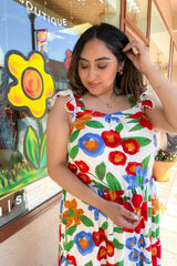 This Red White And Blue Floral Midi Dress will have you looking like a floral explosion! With its bold colors and chic silhouette, you'll be turning heads and achieving maximum style points! Don't miss your chance to be a blooming beauty! Kenya is wearing a Medium. Slightly oversized.