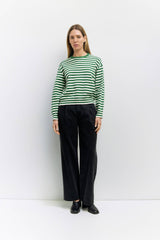 The Kinsley Sweater pairs a relaxed silhouette with bold striped heavyweight knit, bringing cozy texture and effortless style to a classic crewneck design.