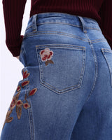 Step out in style with the Lora Jeans—high-rise, stretch denim crafted for comfort and flair. Featuring bold red embroidery and a trendy raw hemline, these jeans add a playful twist to your everyday look. Perfect for those who love a bit of edge with effortless fit.