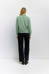 The Kinsley Sweater pairs a relaxed silhouette with bold striped heavyweight knit, bringing cozy texture and effortless style to a classic crewneck design.