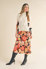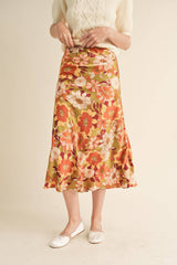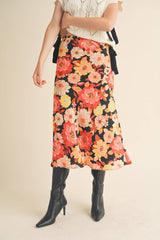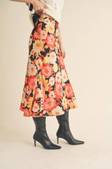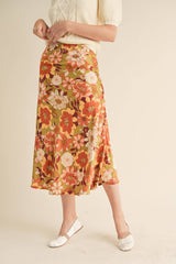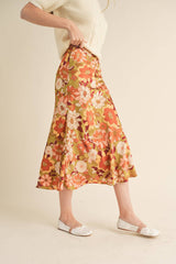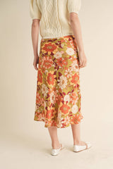 EXCLUSIVE PRINT SATIN FLORAL MIDI SLIP SKIRT MSK2645