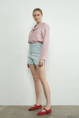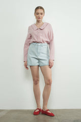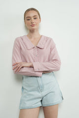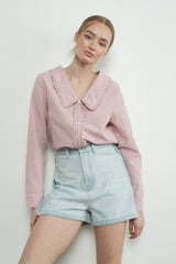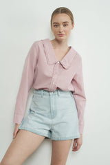 RUFFLE EDGE COLLAR BUTTON DOWN BLOUSE