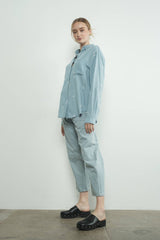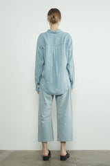 This chambray shirt boasts intricate flower embroidery throughout, creating a delicate and elegant look. Made from incredibly soft tencel denim, this shirt features a button-down front, front pocket, and a relaxed, flowy silhouette. The attention to detail in the embroidery adds a unique touch of charm to this versatile piece.