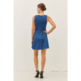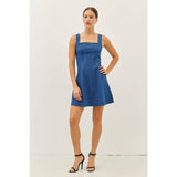 This stretchy denim mini dress offers an a-line fit and flare silhouette for a figure-flattering look. Made with stretchy denim, this dress provides both style and comfort. Perfect for a casual outing or a night out, this dress will keep you looking and feeling great.