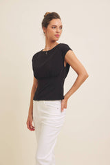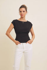 STRETCHY KNIT TOP WITH TAILORED WAIST