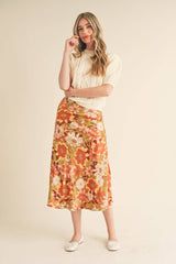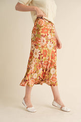 EXCLUSIVE PRINT SATIN FLORAL MIDI SLIP SKIRT MSK2645