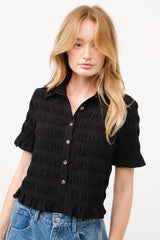 SMOCKED SHORT SLEEVE BUTTON DOWN