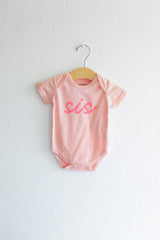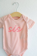 Introducing the Sis baby onesie - a highly-requested design, inspired by all the baby sisters making their debut. This soft pink printed baby bodysuit is the perfect baby shower gift or newborn baby outfit for the infant girl entering your life. - Runs on the Smaller Side, 3mo is closer to a newborn